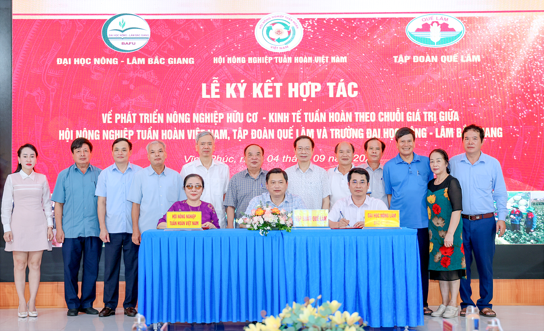 Về phía Hội NNTH Việt Nam và Tập đoàn Quế Lâm có ông Nguyễn Hồng Lam – Chủ tịch Hội NNTH Việt Nam, Uỷ viên Ban Thường vụ Hội Người cao tuổi Việt Nam, Uỷ viên Uỷ ban Mặt trận Tổ Quốc Việt Nam, Chủ tịch HĐQT Tập đoàn Quế Lâm, nhà khoa học của nhà nông; ông Nguyễn Thanh Vĩnh – Phó Chủ tịch Hội NNTH Việt Nam, Tổng Giám đốc Tập đoàn Quế Lâm; bà Hồ Thị Tú Anh – Ủy viên Ban Thường vụ Hội NNTH Việt Nam, Chi hội trưởng Chi hội NNTH miền Nam, Trưởng ban Truyền thông Hội NNTH Việt Nam, Giám đốc Truyền thông Quế Lâm; ông Hồ Đăng Khoa – Uỷ viên BCH Hội NNTH Việt Nam, Phó TGĐ Tập đoàn Quế Lâm; ông Dương Minh Lâm – Uỷ viên BCH Hội NNTH Việt Nam, Phó TGĐ Tập đoàn Quế Lâm cùng nhiều cán bộ, nhân viên của Tập đoàn Quế Lâm.