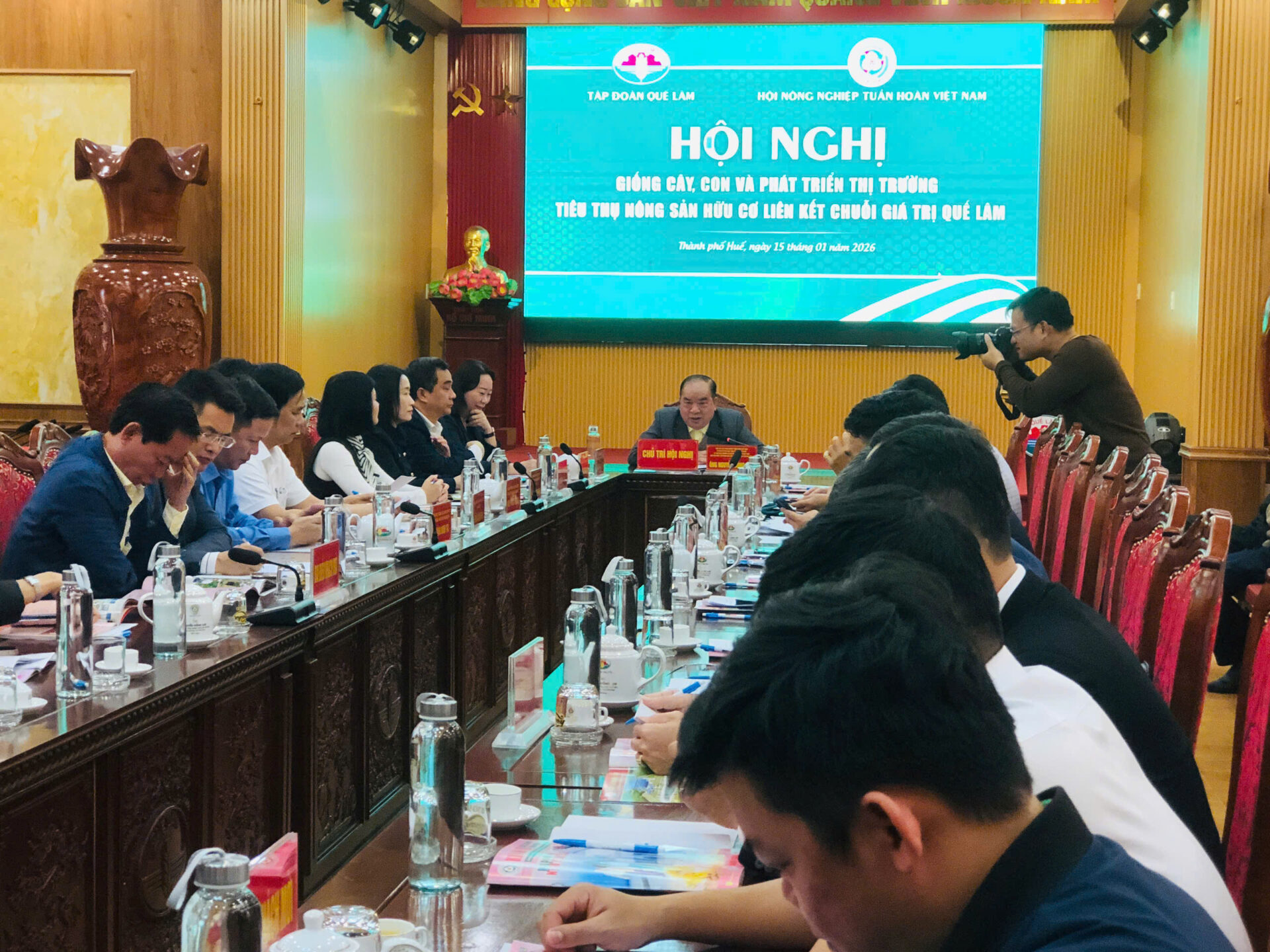 Ngày 15/1/2025, tại 50 Phú Mộng, TP Huế, Tập đoàn Quế Lâm và Hội Nông nghiệp tuần hoàn Việt Nam (NNTHVN) đã tổ chức hội nghị “Giống cây, con và phát triển thị trường tiêu thụ nông sản hữu cơ liên kết chuỗi giá trị Quế Lâm”. Ông Nguyễn Hồng Lam – Chủ tịch Hội NNTHVN, Chủ tịch Tập đoàn Quế Lâm chủ trì hội nghị.