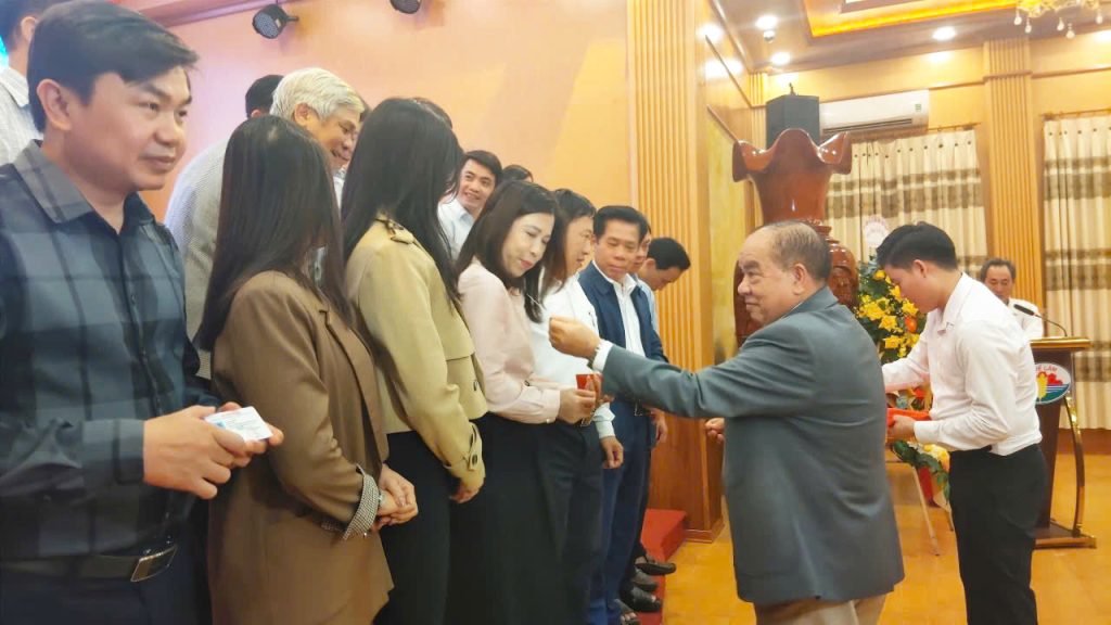 Kết thúc hội nghị, Chủ tịch Nguyễn Hồng Lam và đại diện lãnh đạo Hội NNTH Việt Nam đã trao thẻ cho 88 CTV tuyên truyền, hướng dẫn phát triển NNHC-KTTH chuỗi liên kết giá trị Quế Lâm.