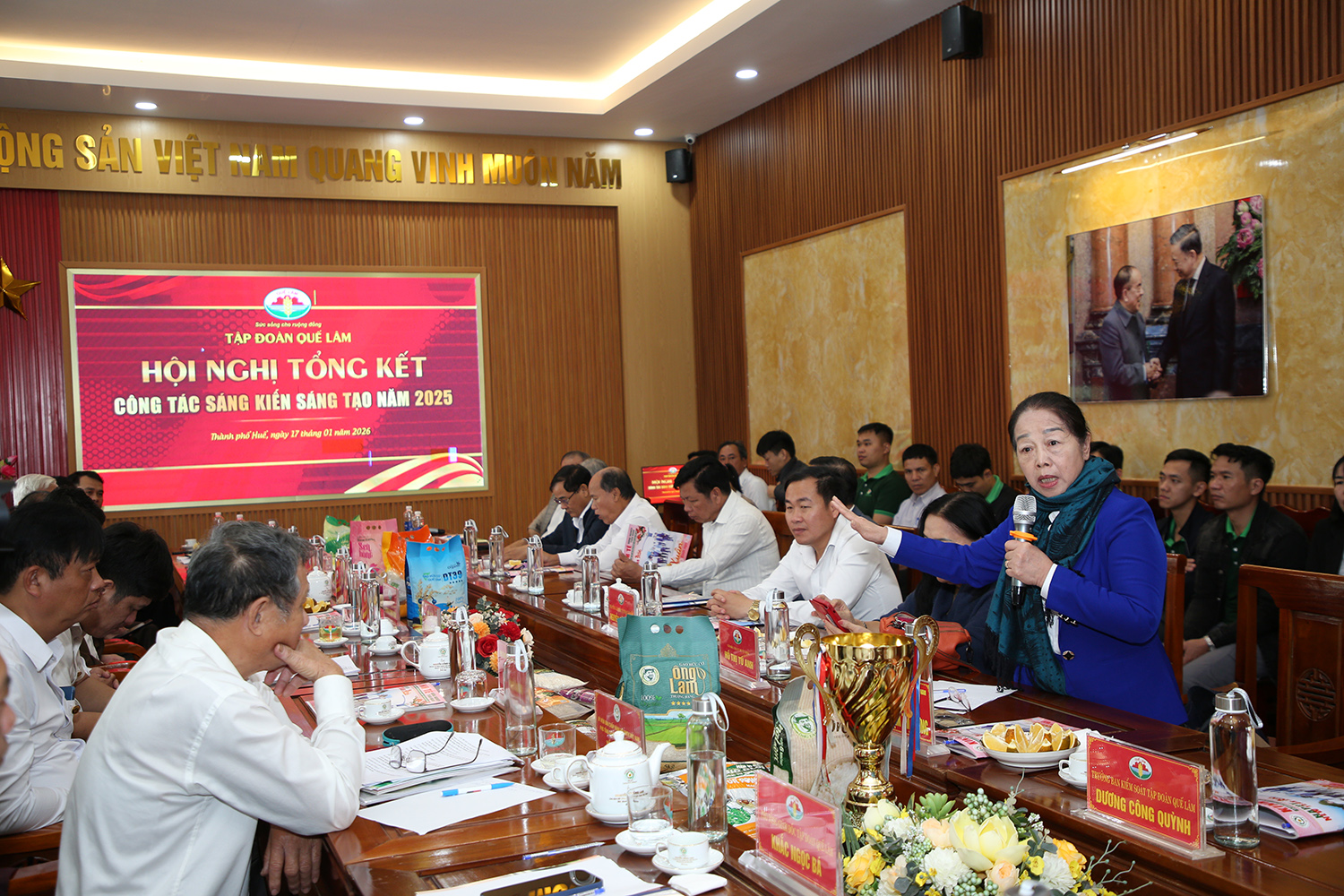 Kết luận hội nghị, Chủ tịch HĐQT, Chủ tịch Hội đồng Khoa học Nguyễn Hồng Lam ghi nhận và biểu dương những nỗ lực tìm tòi, nghiên cứu không ngừng của các tập thể, cá nhân. Chủ tịch nhấn mạnh, các sáng kiến có giá trị khoa học và thực tiễn cao cần tiếp tục được hoàn thiện, trở thành sản phẩm hàng hóa, góp phần giúp nông dân làm giàu- đúng với mục tiêu mà Tập đoàn Quế Lâm kiên định theo đuổi.