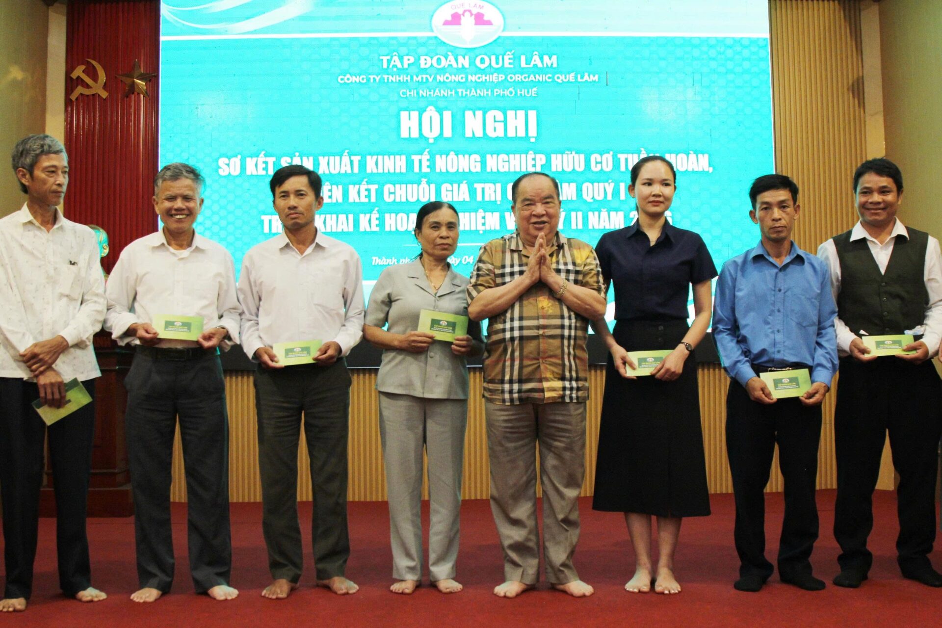 Dự chỉ đạo hội nghị có ông Nguyễn Hồng Lam – Ủy viên Uỷ ban Trung ương MTTQ Việt Nam, Uỷ viên Ban Thường vụ Hội Người cao tuổi Việt Nam, Chủ tịch Hội NNTH Việt Nam, Chủ tịch HĐQT Tập đoàn Quế Lâm, nhà khoa học của nhà nông và lãnh đạo các sở, ban, ngành thành phố Huế, các xã, phường và các hộ nông dân tham gia liên kết chỗi giá trị Quế Lâm.