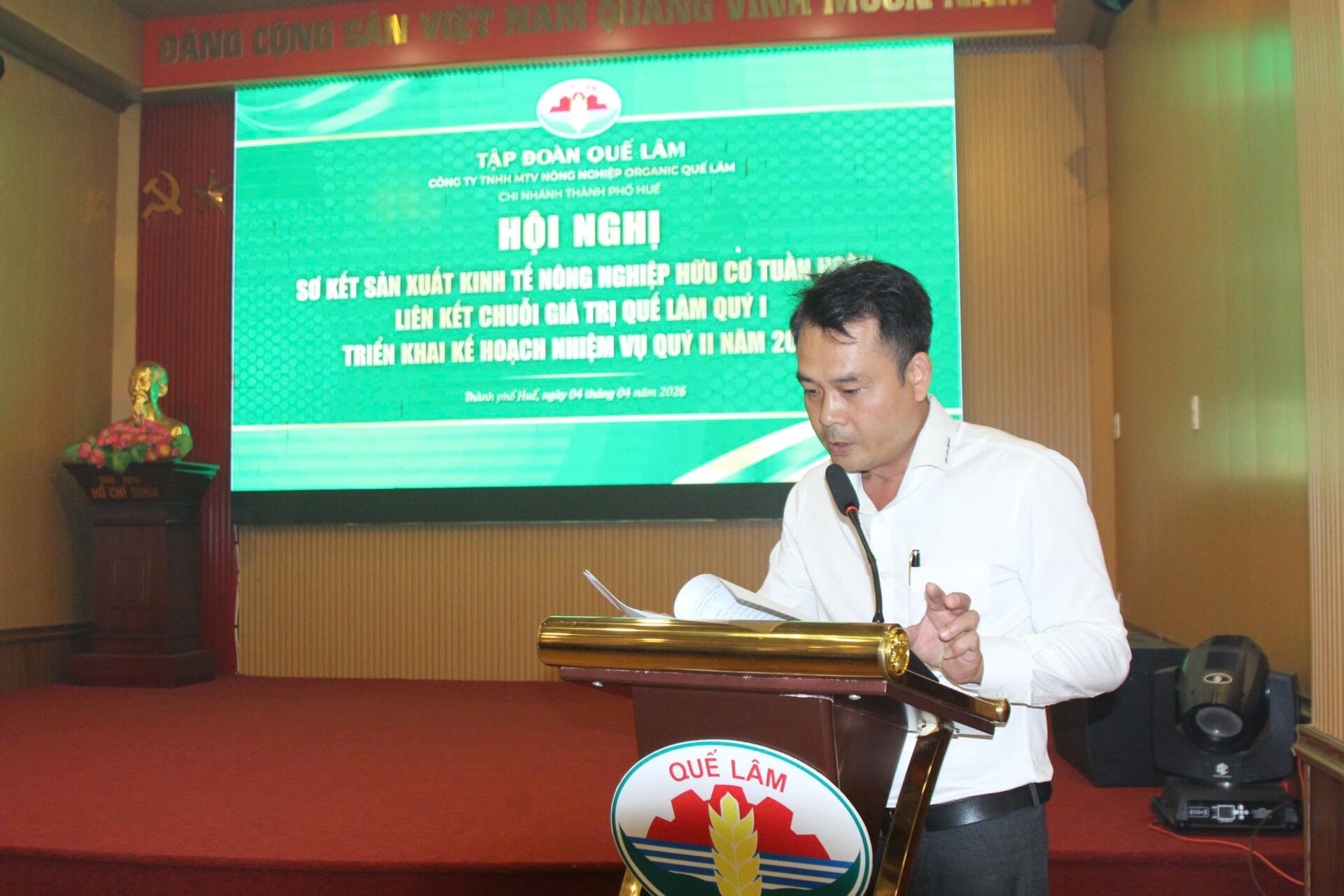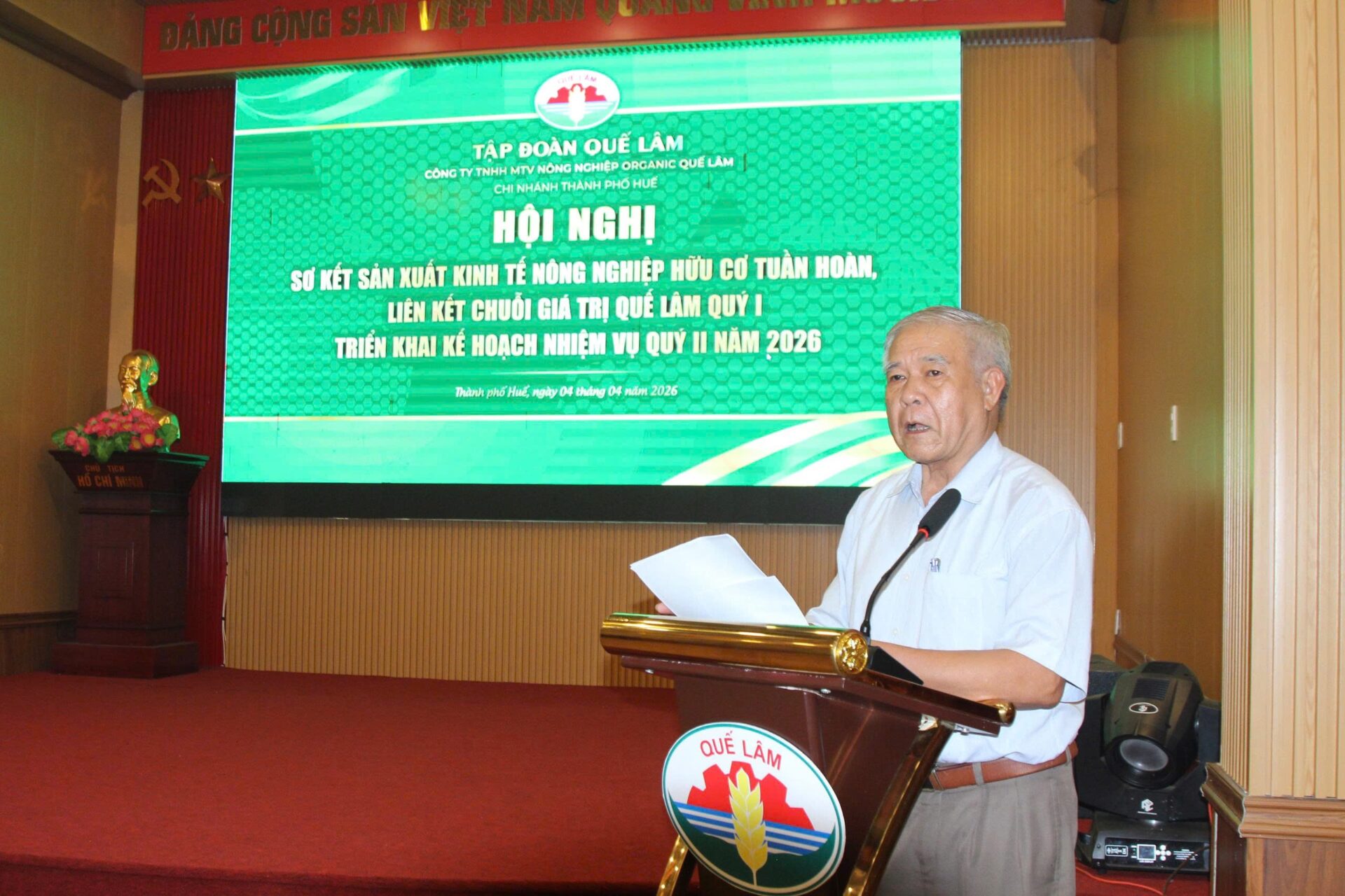 Sáng ngày 4/4/2026, tại TP. Huế, Công ty TNHH MTV Nông nghiệp Organic Quế Lâm tổ chức hội nghị sơ kết sản xuất nông nghiệp hữu cơ tuần hoàn, liên kết chuổi giá trị Quế Lâm quý I và triển khai nhiệm vụ trọng tâm quý II năm 2026.