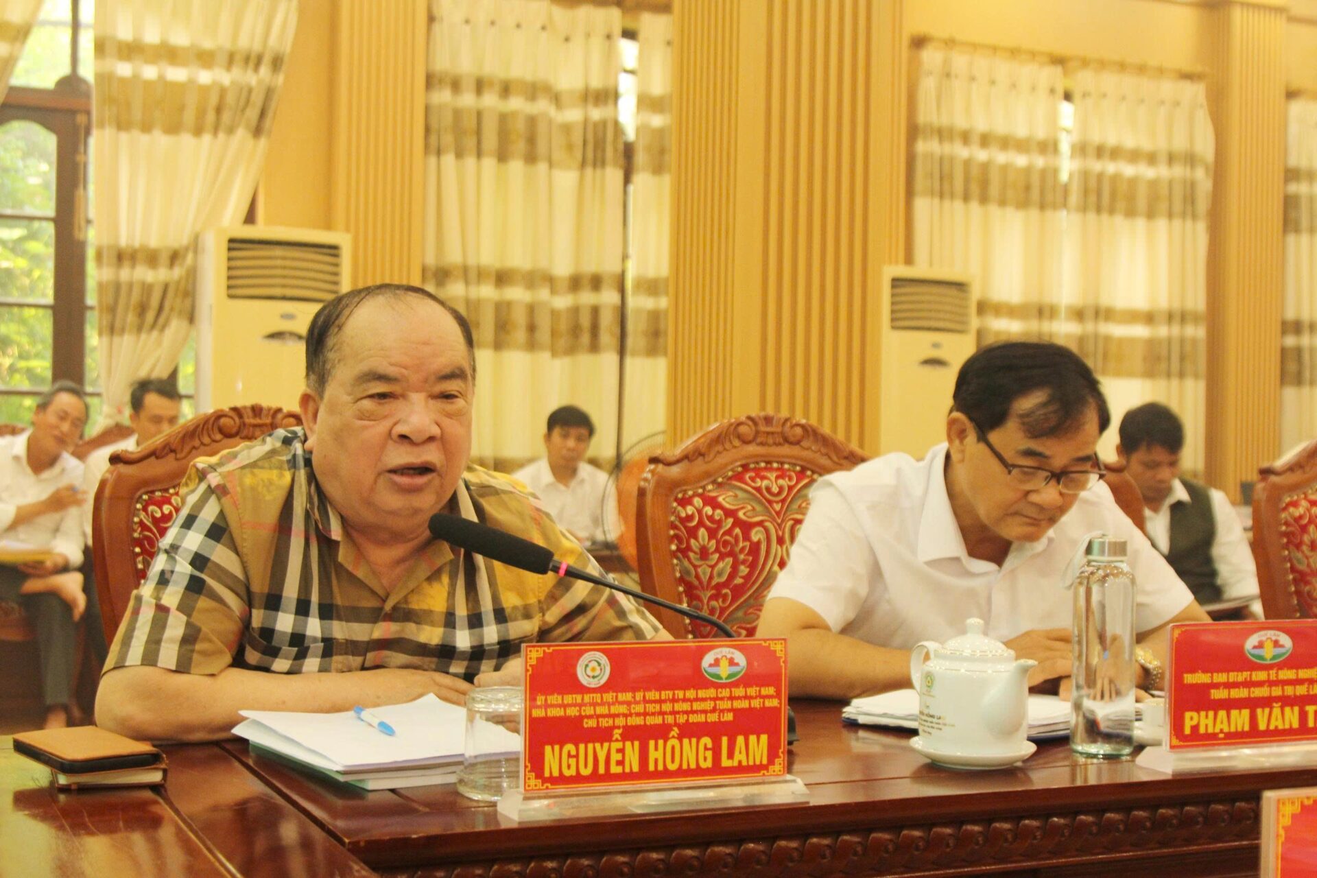 Phát biểu chỉ đạo hội nghị, Chủ tịch Nguyễn Hồng Lam ghi nhận những nỗ lực của Công ty TNHH MTV Nông nghiệp Organic Quế Lâm và sự hợp tác, cộng đồng trách nhiệm của các xã, phường, hợp tác xã, các tổ liên kết, bà con nông dân trong chuỗi giá trị, đã khắc phục khó khăn, xây dựng được nhiều mô hình trồng trọt, chăn nuôi, tiêu thụ sản phẩm hiệu quả, tạo lòng tin và sức lan tỏa sản xuất nông nghiệp hữu cơ tuần hoàn, chuỗi giá trị Quế Lâm trong cộng đồng. Ông cũng mong muốn bà con nông dân tích cực chăm lo, mở rộng, phát triển các mô hình để mang lại hiệu quả kinh tế cao hơn.